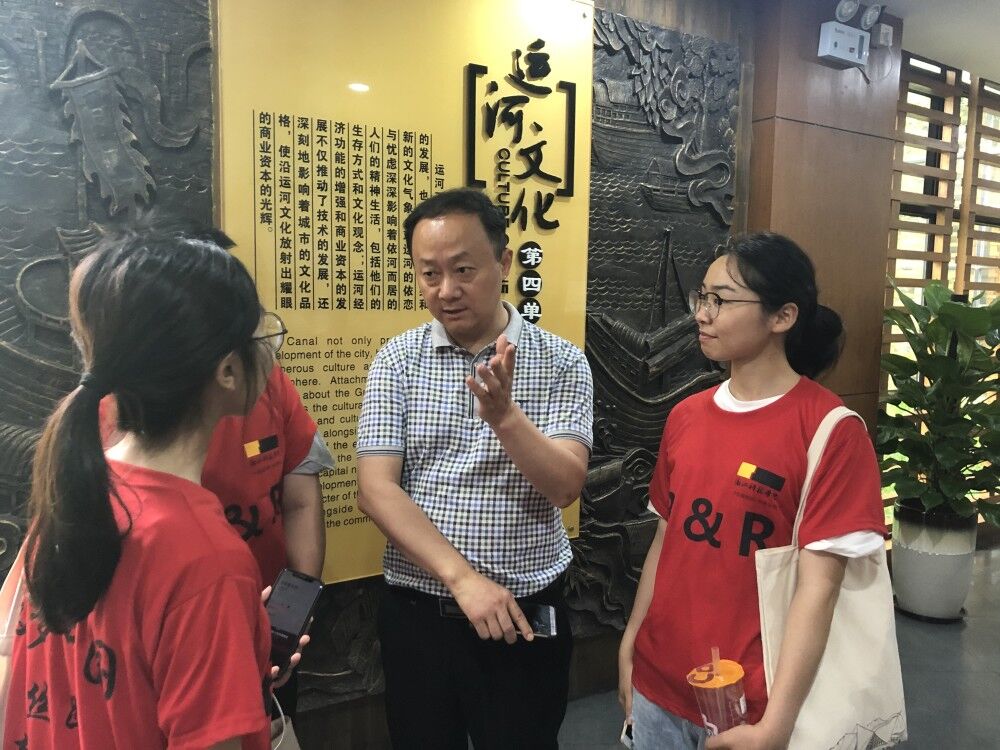傍晚,队员们一行来到博大精深的中国京杭大运河博物馆。京杭大运河的开通和变迁带动了文化的交流融合,证明了“一带一路”政策的前瞻性。在采访过程中我们遇到了一位中学董事长带员工来参观学习,他意味深长地告诉大家,中国倡议的“一带一路”是共赢,是发展的必然趋势。参观时,同学们被专心作画的民俗风情画家吴先生吸引了视线,他饶有兴致地打趣笔下画的正是“一带一路”。