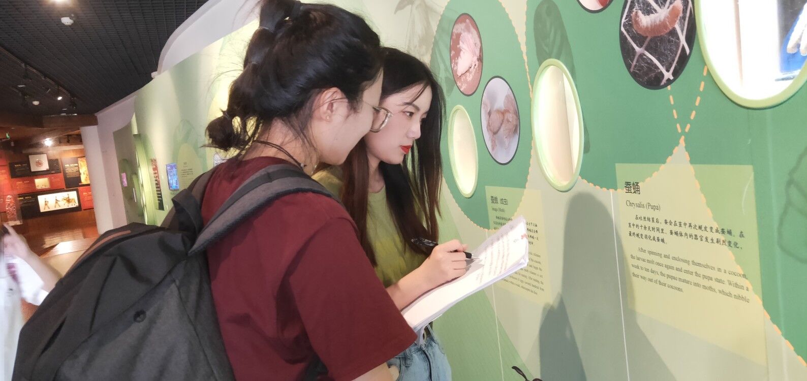 参观完茶叶博物馆,实践队的队员们兴致高昂地来到了美轮美奂的中国丝绸博物馆。在讲解员的介绍下,我们了解到,中国是古代世界最早开始种桑、养蚕、生产织品的国家,《马可波罗游记》中有文字介绍当时杭州的丝绸。作为丝绸之路的代表商品,丝绸俨然成为一张亮丽的国家名片。接着,队员们分头行动,对来访的游客进行了采访和问卷调查,我们认识到“一带一路”已经走进人们的生活,不再停留在历史的长河中。