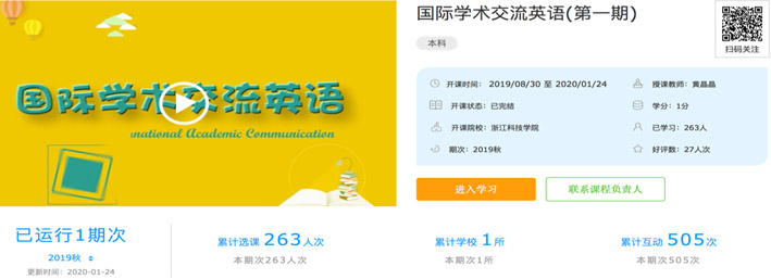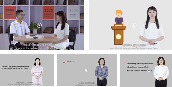线上MOOC已在浙江省高等公司在线开放课程共享平台开设第二期。课程以一名申请参加国际学术会议的员工为主人公,四名主讲教师为帮助者,解决其在准备学术会议过程中的一系列问题为故事主线展开。共有七个教学单元: 背景知识介绍、会议前的协作准备、会议中的自我介绍、准备会议演讲、展开会议演讲、会议讨论、会议用餐。每个教学单元由若干个微课视频构成,每个教学视频包括主题导入、内容详解、知识点回顾和课后拓展四个部分,视频总时长约260分钟。此外每个章节均附有PPT供员工学习参考,每个章节后配套相应的在线习题,每个单元配套一次单元测验,并配合课堂教学布置在线讨论等,以此展开MOOC教学。
