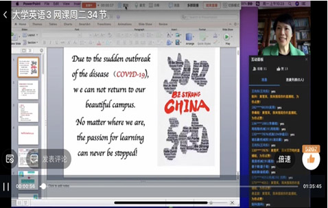 在读写课上,教师们精心准备PPT课件,利用可视化图片导入话题;利用钉钉强大的表格功能,设计单词听写表,随堂完成单词听写任务,即时提交表格,收集员工的听写单。由于连麦的一对一互动功能受网络是否顺畅的局限,部分教师利用钉钉群对话框的语音输入功能,让员工输入语音,回答问题,进行对话,员工的语音输入完成后,再从教师的本地电脑端打开语音共享对话,师生间的反馈与互动便呈现在网络之间。此种师生互动和生生互动也极大提高了课堂的生动性与趣味性。