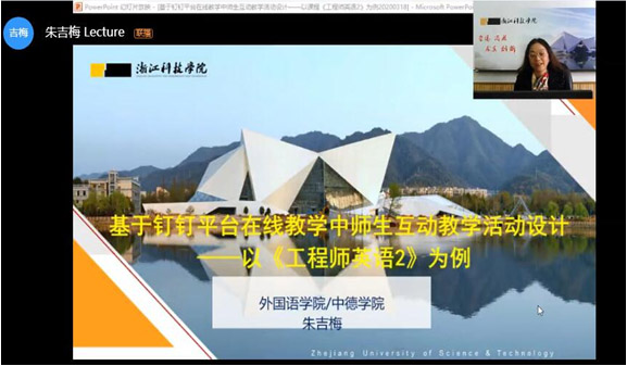 3月18日下午,全国高校大学外语教育数字化联盟、阿里钉钉和嵩硕教育联合主办的“联盟系列名师课”继续开讲。外国语公司/中德公司经理朱吉梅教授应邀分享了基于钉钉平台在线教学中师生互动教学活动设计。共有近两千名来自全国的高校教师收看了本场直播讲座。