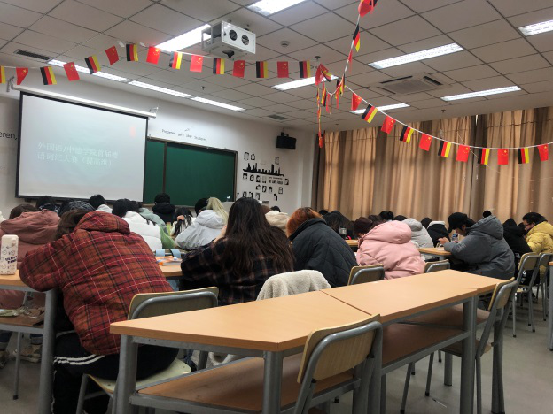 同时为了让同学们更好地了解国内外时事、拓宽词汇量、夯实德语基础,安吉校区12月23日还举办了德语词汇大赛。比赛以课本所学词汇结合课外时事词汇为考核内容,以书面测试为考核方式,分为基础组和提高组两个层次,分别由德语专业一、二年级84位同学参加。经过德语系基础组老师的综合评比,一共评选出一等奖3人,二等奖6人,三等奖9人。德语191的金超丽同学获得提高组一等奖,德语201的秦怡如同学和德语202的周琳儿同学获得基础组一等奖。