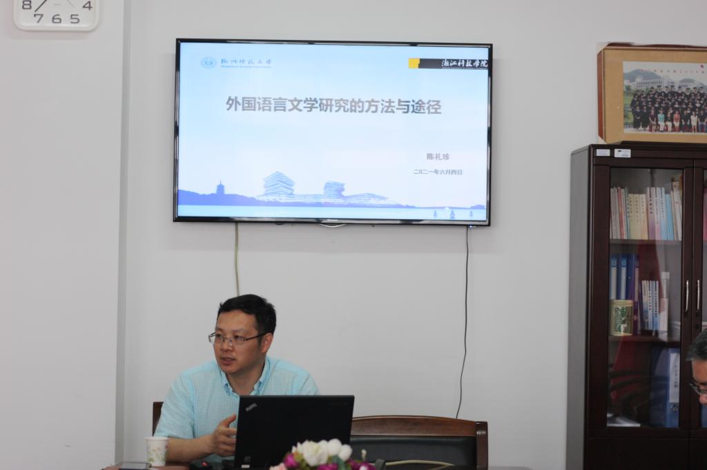 2021年6月4日(周五)上午,应外国语公司的邀请,杭州师范大学陈礼珍教授在闻理园A3-306做了题为“外国语言文学研究的方法与途径”的学术讲座,公司B5岗级以上教师、全体博士以及中德公司的部分教师参加了此次讲座,讲座由外国语公司经理樊燕龙主持。
