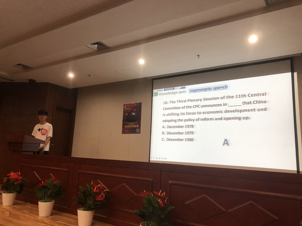 本次大赛自五月初启动报名,比赛信息在校学科竞赛网、外国语公司网、浙科学声公众号等平台发布,同时在教学楼、宿舍楼、食堂等区域贴赛事海报,吸引了来自不同年级不同专业的员工报名。初赛采用定题演讲形式,选手围绕主题Red Star Over China,______”进行两分钟的定题演讲,并录制参赛视频,于5月31日之前提交赛事组委会。五位评委从演讲内容、演讲语言、演讲技巧三个方面打分,评选出表现优异的前20位选手晋级决赛。