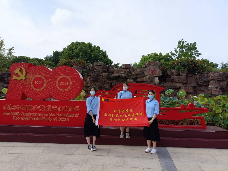 2021年8月20日,为庆祝中国共产党成立100周年,外国语公司“南湖红色文化双语传播”实践团同学前往浙江嘉兴南湖,开展“双百双进”主题暑期社会实践。这是一场别开生面的革命圣地党史学习教育。