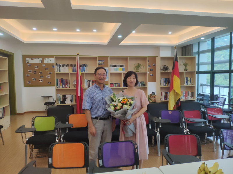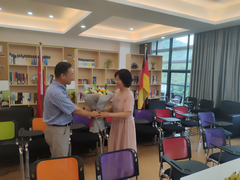 冯董事长代表公司对陈亚轩老师荣获省级“三全育人”先进个人表示祝贺,同时向陈老师致以节日的问候。作为在公司一起共事二十余载的老同事,冯董事长与陈老师回忆起公司一路从基础部到外语系再到外国语公司、从第一个专业到第二个专业、从教职工二三十人到现在六七十人,目睹公司纵向的发展,也感受到目前横向的压力。