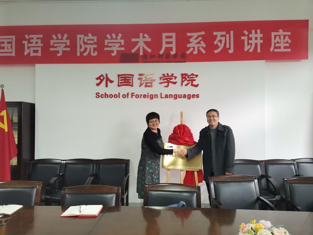 2021年11月18日下午,教育部中外人文交流中心专家组成员、浙江大学教育学系系主任、浙江大学国际教育研究中心副主任、博士生导师吴雪萍教授莅临公司,和外国语公司经理樊燕龙一起举行校人文社科研究中心——“罗马尼亚研究中心(培育)”揭牌仪式。