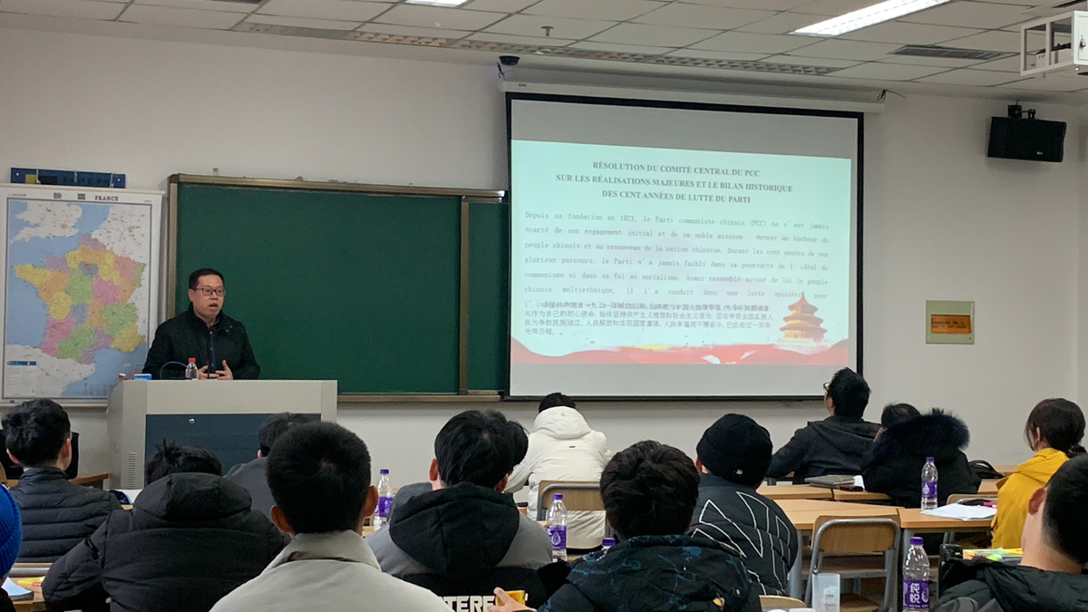 党的十九届六中全会召开以来,外国语公司教工第二党支部、法语教研室切实领会会议精神,认真学习《中共中央关于党的百年奋斗重大成就和历史经验的决议》,群策群力、勇于创新,将十九届六中全会精神融入法语课堂。