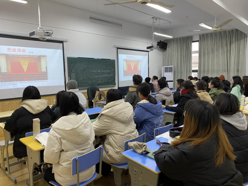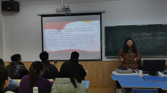 大学英语部全体教师积极开展以课程思政为主题的教研活动,深入学习全会精神,以课程“思政周语”为引领,通过“党的十九届六中全会精神”专题系列,结合大学英语课程特色,在大学英语课堂进行导学、导思。在国际交流英语课堂中,通过对中西文化的阐述与对比,引导员工不断增强政治判断力、领悟力,从统筹疫情常态化管理看党中央权威和集中领导的重大作用,坚决维护党的领导,建立大局意识,树立制度自信和文化自信。