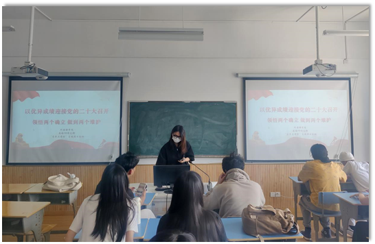 英语192班的团日活动以“青年大学习——以优异成绩迎接党的二十大召开,深刻领悟两个确立,坚决做到‘两个维护’为主题,以学习宣传贯彻习近平新时代中国特色社会主义思想为主线。通过本次活动同学们深刻体会到党的二十大承担的重大使命,树立了与这个时代同心同向的理想信念,励志培养实践能力,磨练意志品质。