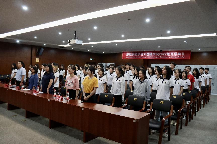 9月23日下午,外国语公司2022级新生开学典礼在安吉校区图书馆报告厅隆重举行。外国语公司经理樊燕龙、副经理王旭莲、党总支副书记兼副经理方小卿、英语系主任祝敏及新生班主任等出席,2022级全体新生参加,典礼由党总支书记丁炳泉主持。