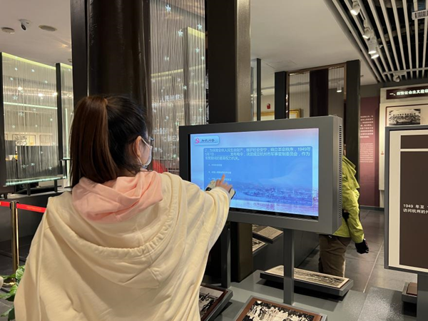 在参观过程中,青年学子们细细端详馆中展出的600余件红色实物,时不时与同行同学轻声讨论历史以及革命先辈的红色精神。在历史馆提供的答题设备上答题,检验自己今日的学习成果。