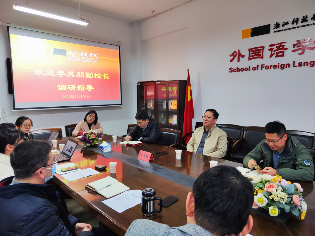 11月29日下午,公司党委委员、副董事长李其朋来外国语公司、中德公司调研指导,科研处处长马伟锋、副处长伦玉敏和校办人员陪同,两个公司班子成员参加。
