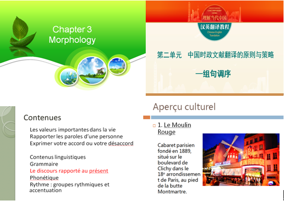 团队负责人祝敏老师有丰富的教学经验,负责英语专业多门专业核心课程的教学。她教授《英语语言学》多年,该课程配套课件曾获得第十二届全国多媒体课件大赛高教文科组二等奖。该课程积极构建翻转课堂的教学模式,同时,结合本课程特征,发掘和梳理课程中蕴含的思想政治元素,比如语言哲学思想对专业研究的影响、语言研究方法中蕴含的马克思主义辩证分析法、语言研究目标的唯物论观等,丰富思政教育资源,促使课程思政教育多元化。