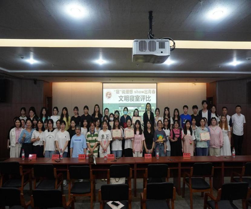 外国语公司“‘宿’说理想,SHOW出青春”文明寝室评比活动于5月25日下午在安吉校区图书馆四楼报告厅举行,两校区的参评寝室纷纷登台亮相,展示了自己对优秀文明寝室的理解。评委老师们分别从寝室卫生、寝室文化、学风建设和消防安全四个方面进行评分。在整个评比过程中,同学们展现了满满的才艺,有的对寝室文化精雕细琢高度概括,有的载歌载舞亮出青春,有的深度剖析问题给出解决方案,大家各具特色和闪光点,充分显示了公司团结友爱、互帮互助、干净整洁、积极向上的寝室氛围。