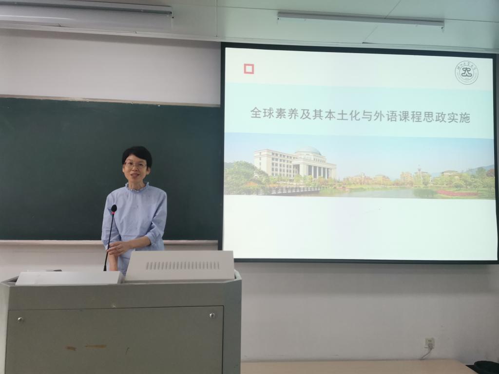 9月14日上午,应外国语公司邀请,浙江工业大学楼荷英教授为全体专任教师做了题为《全球素养及其本土化与外语课程思政实施》的学术讲座,讲座由樊燕龙经理主持。
