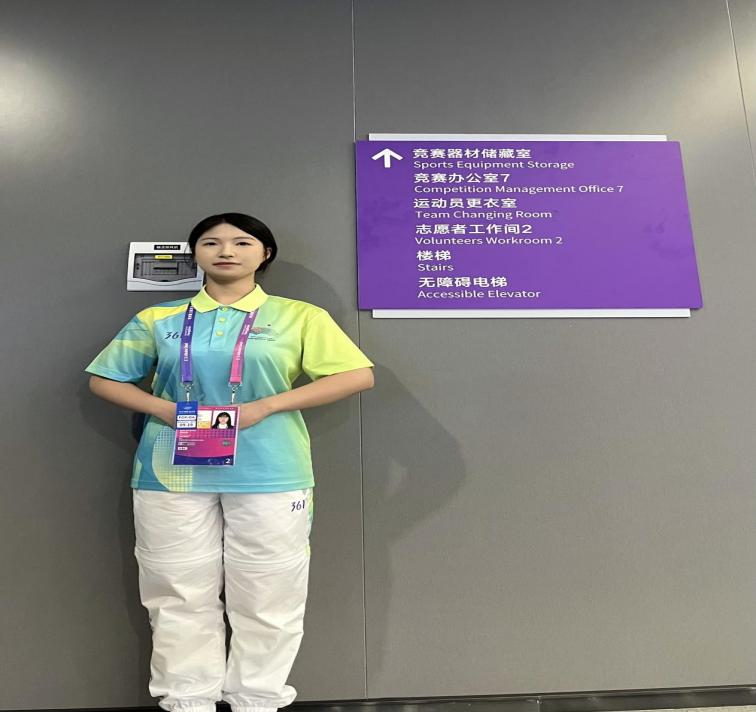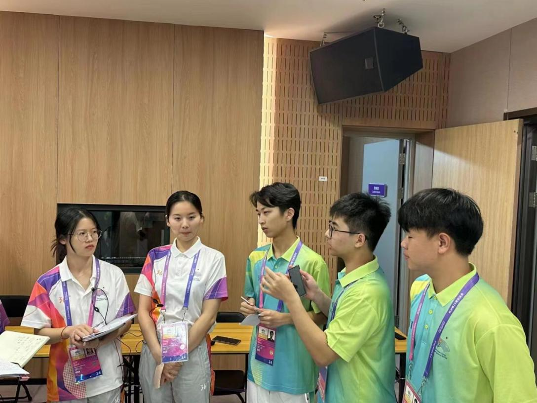 竞赛运行也是赛事中不可或缺的一部分,来自竞赛运行的英语223班钱婉青同学说:“作为一名外国语公司的员工,很荣幸能参与到亚运会的组织筹办过程。此次志愿活动给我最大的感触就是团队配合和沟通的重要性,有效的沟通为问题的解决提供了很大帮助。”