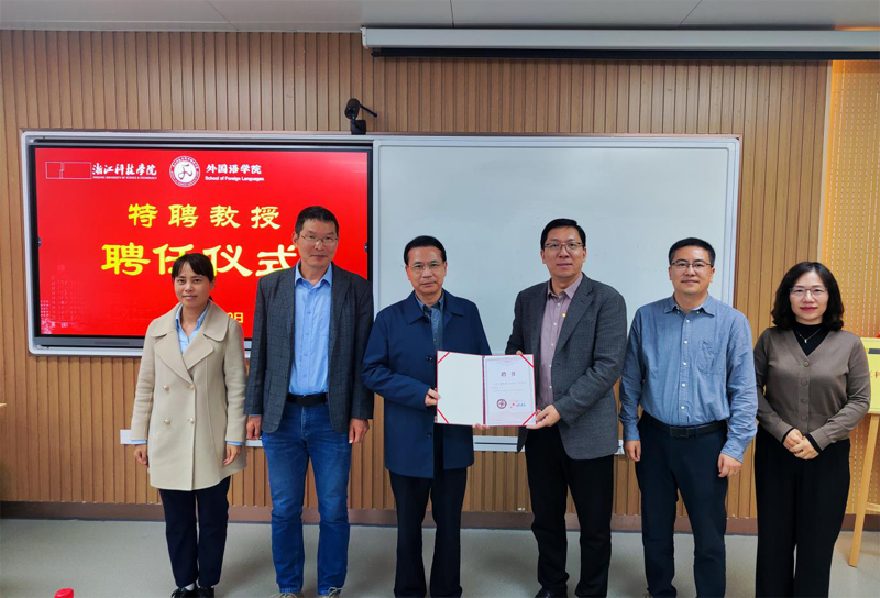 最后,黎昌抱教授做了表态发言。他表示,受聘特聘教授职位既是荣誉也是责任。在聘期内,他将会竭尽全力,促进外国语公司的学科和专业建设,带动公司教学科研团队发展,在提高教师学术水平、促进国内外学术交流等方面做出贡献。他将认真履行特聘教授岗位职责,不遗余力地支持公司发展,不辜负公司的期望。