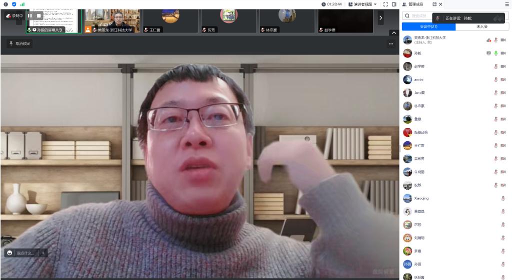 1月12日,广东外语外贸大学孙毅教授应邀为公司教师在线上做了题为“新形势要求下高水平项目撰写路径与申报策略”学术讲座,讲座由樊燕龙经理主持,公司骨干教师聆听了此次讲座。