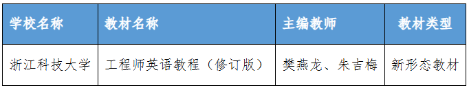 近日,浙江省普通本科高校“十四五”第二批新工科、新文科、新医科、新农科重点教材建设项目评审结果新鲜出炉。根据日前浙江省高教学会《关于确定浙江省普通本科高校“十四五”第二批新工科、新医科、新农科、新文科重点教材建设立项项目的公示》,公司教师樊燕龙团队的《工程师英语教程(修订版)》教材项目成功获批浙江省普通本科高校“十四五”第二批新工科、新医科、新农科、新文科重点教材建设项目。公司共有3项教材项目入选浙江省高校通识教育分会推荐教材。