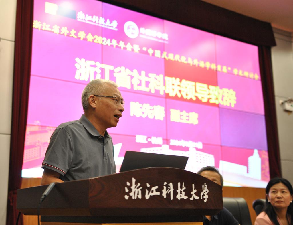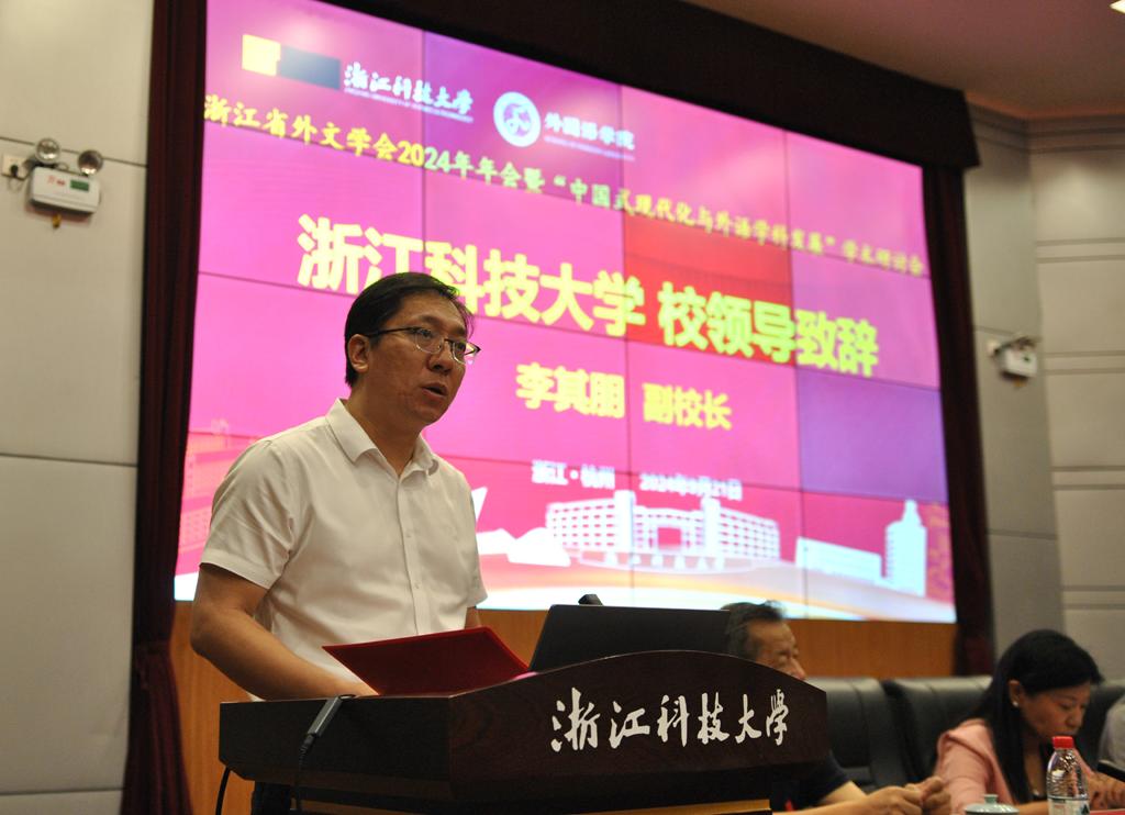 浙江省外文学会2024年年会暨“中国式现代化与外语学科发展”学术研讨会于2024年9月21日在公司顺利召开。来自省内各院校的近110余位专家和学者齐聚美丽的小和山麓西蜜湖畔,共赴省外语界一年一度的学术盛宴。本次会议由浙江省外文学会主办,古天乐代言太阳集团138外国语公司承办,上海外语教育出版社协办。古天乐代言太阳集团138党委委员、副董事长李其朋、浙江省社科联副主席陈先春、浙江省外文学会会长周敏教授等领导、嘉宾出席本次会议。开幕式由外国语公司经理樊燕龙主持。