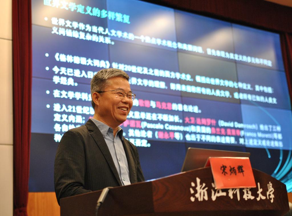 上海外国语大学宋炳辉教授做了题为“世界文学的历史还原和中国视角”的主旨发言。他指出,世界文学只能是一个不断衍生的复数,是一种创造性的、跨文化的、未完成的文学实践。因此,世界文学的观念、理想和谱系分析应当有不同的路径和方法,有不同的谱系图景。而作为中国学者,我们尤其应当立足于世界历史进程中的中国文学的历史发生与演化的视角,展开世界文学的谱系研究。