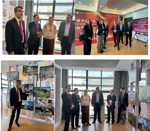 今年是中罗建交75周年,研究中心在罗马尼亚馆中布设了“跨越时空的对话:光影中的中罗情缘——纪念中罗建交75周年民间摄影展”,包括罗马尼亚印象·风光篇、留学时光·人文篇、逆向旅行·记忆篇,展出的照片由西米那博士、公司罗马尼亚籍职工和外国语公司师生提供。参观之后,西米那博士对公司在推进中罗两国人民在国际教育与合作方面取得的成绩表示高度认可。