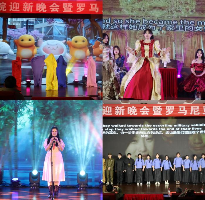 晚会在英语241班同学带来的《Bombing》开场舞中活力开启,瞬间点燃全场热情。音乐剧《后妈茶话会》、《甄嬛传》配音、《金陵十三钗》改编剧、脱口秀、昆曲等节目展现了公司学子们多样的才艺。来自罗马尼亚的职工们也积极参与,带来了葫芦丝演奏、罗马尼亚舞蹈串烧和《梧桐树下的爱》歌舞表演,让观众感受到了浓郁的异国风情。林宗豪老师携手英语242班林子墨同学共同献唱《在我生命中的每一天》,用音乐与全场观众展开了热烈互动。
