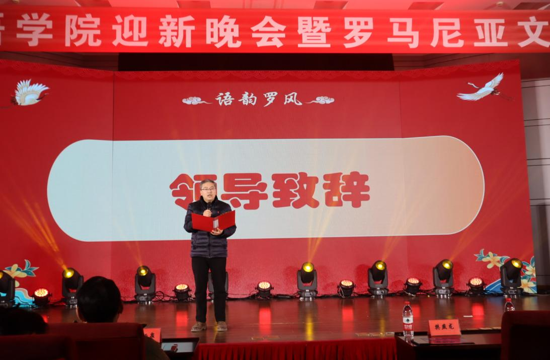 首先樊燕龙经理发表了致辞,他回顾了公司过去一年在考研深造率、高质量就业率、专八通过率等方面的显著进步,并鼓励全院师生携手共绘公司的绚丽画卷,也感谢师生们在罗马尼亚文化节中的辛勤付出。