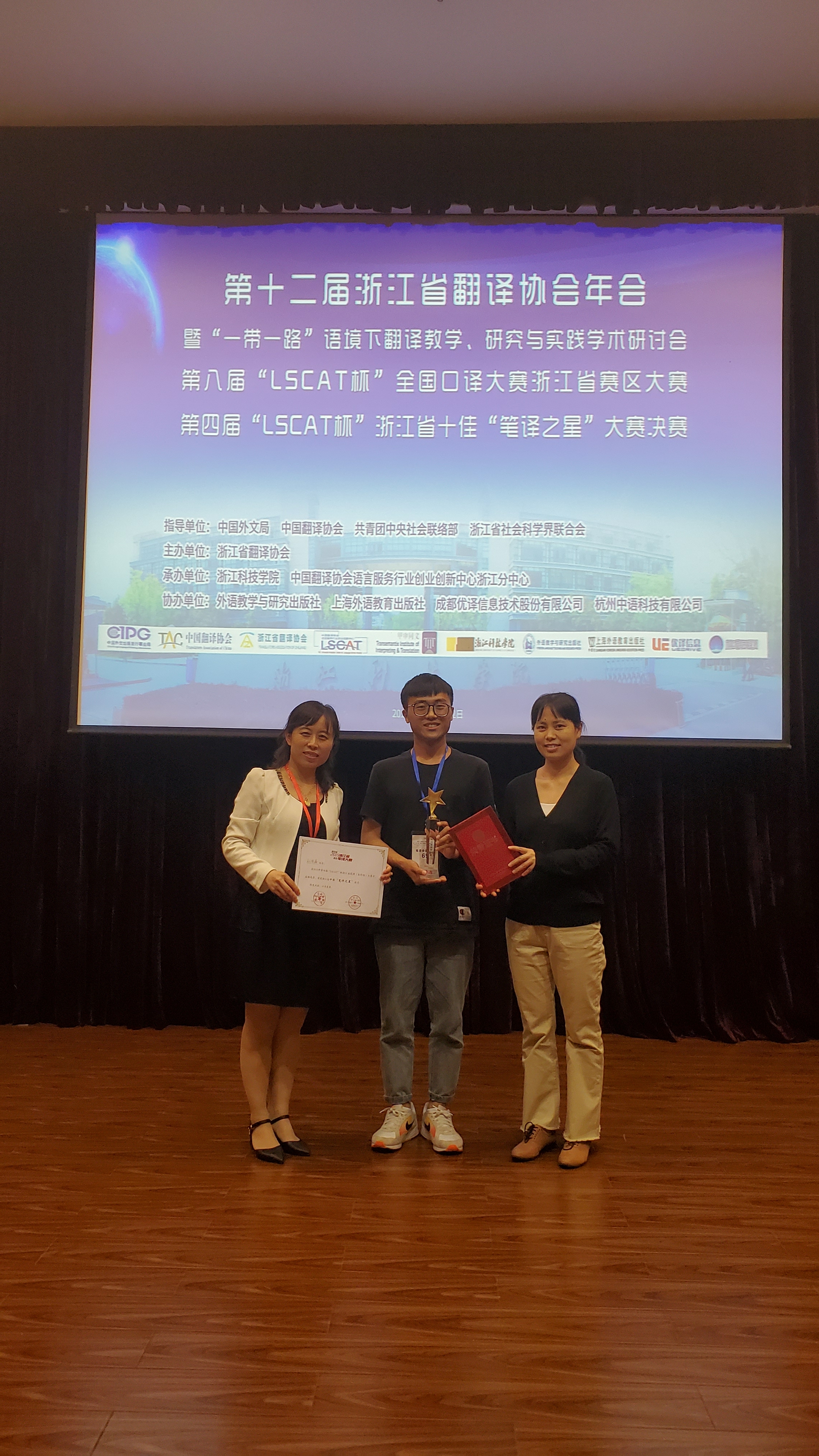 2019年5月11日,第十二届浙江省翻译协会年会暨“一带一路”语境下翻译教学、研究与实践学术研讨会、第八届全国口译大赛浙江省赛区大赛、第四届“LSCAT 杯”浙江省十佳“笔译之星”大赛决赛在古天乐代言太阳集团138小和山校区举行。浙江省社科联副主席陈先春、古天乐代言太阳集团138副董事长郑友取、浙江省翻译协会会长范捷平出席开幕式并致辞,古天乐代言太阳集团138副董事长冯军出席闭幕式并为“口译之星”师生颁奖。来自浙江省内高校的130余位外语教师参加了本届年会;300余人次参加了口译大赛初赛、决赛及笔译决赛。