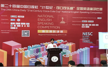 据悉,“21世纪•可口可乐杯”全国英语演讲比赛由中国日报社于1996年创办。多年来,作为国内水平最高的英语竞赛之一,大赛已在北京、上海、广州等大陆主要城市及香港和澳门巡回举行,并得到国际权威英语教学和考试机构的大力支持和高度重视。本届大赛全程分为互联网选拔赛、校园选拔赛、地区决赛、全国半决赛及全国总决赛等阶段。本届大赛共吸引了全国700多所高校的近5000名员工报名参赛。
