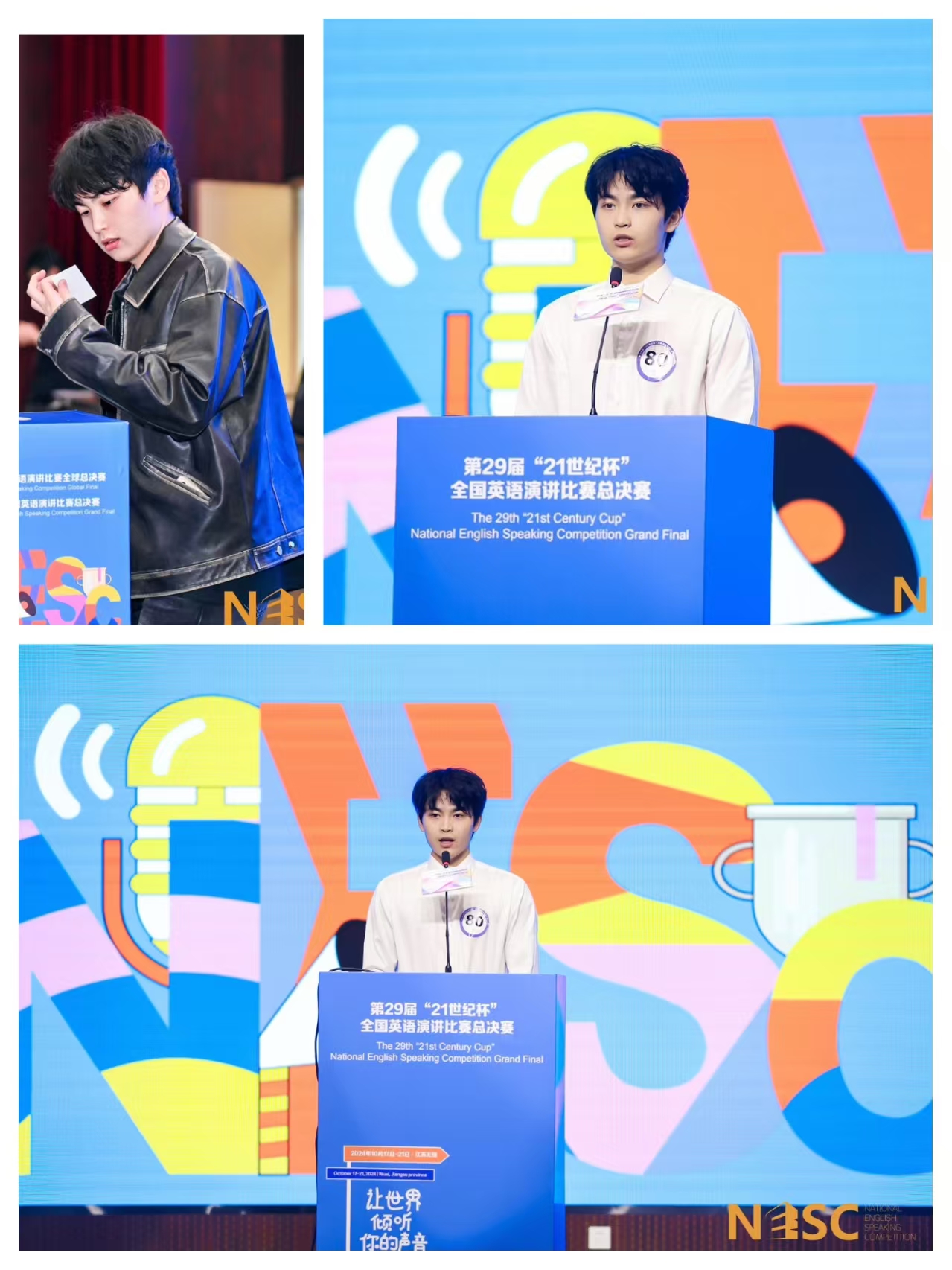 2024年10月16日至21日,第29届“21世纪杯”全国英语演讲比赛全国总决赛在江苏无锡成功举行。江苏省常委、省委宣传部长徐缨、中央宣传部国际传播局局长陈大为、无锡市委书记、市人大常委会主任杜小刚、江苏省委宣传部副部长赵金松等出席并为获奖选手颁奖。
