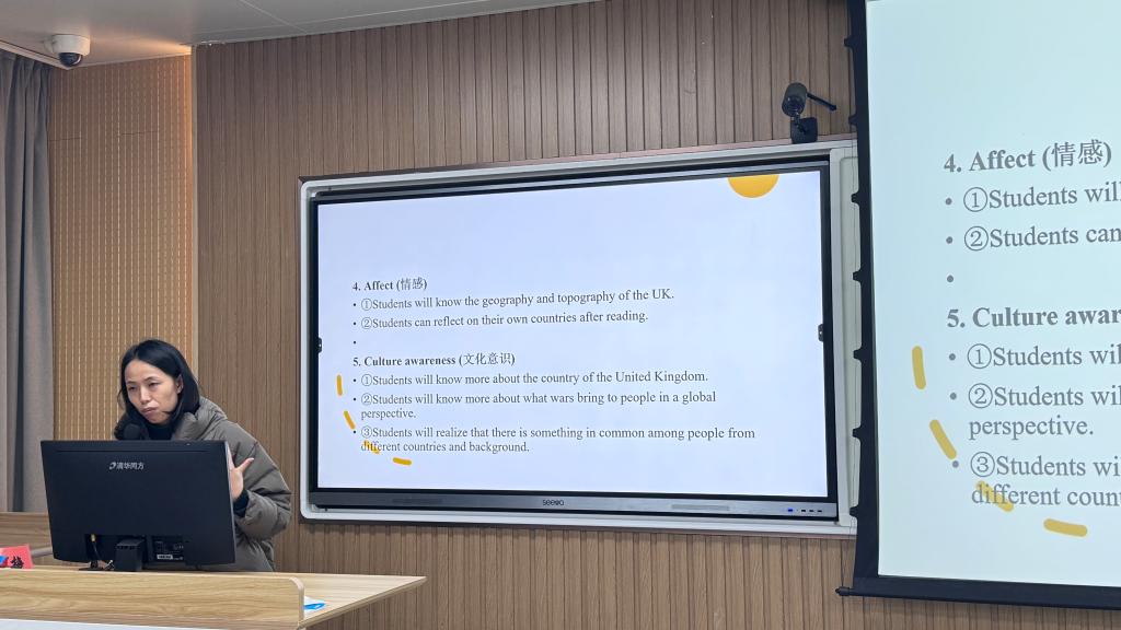 吴彬芳老师从教学目标、教材与学情分析、教学理念与方法以及教学反思等方面展开讲解,积极运用任务教学法、BPPP模式等教学方法,并在课堂中融入思政元素,培养员工的综合素养。