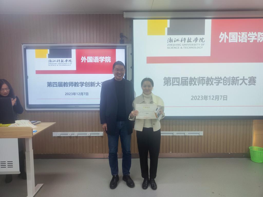 评委根据复赛教师提供的参赛资料,严谨评判,选优推优。从考评标准上,评委们坚持以落实立德树人、创新外语教学、“上好一门课”为竞赛理念,主要考查参赛教师的教学理念与目标、课程思政有机融入、内容与学情分析、多元考核评价、基本教学技能,包括教学设计、课堂教学和教学反思能力;考评过程中强调参赛教师在“互联网+教学”的运用,注重现代信息技术与教学过程的深度融合;在教学环节设计上,评委注重课堂师生互动,意在进一步增强课堂活力,鼓励参赛选手探索案例式、讨论式、研究式、情景式、翻转课堂等行之有效的教学模式和方法。陈景秀老师和朱晓丽老师获得一等奖,吴彬芳和方沁玮老师获得二等奖,其中一等奖推荐至校赛。