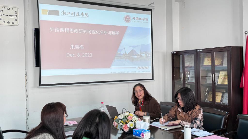 会上,朱吉梅教授以《外语课程思政研究可视化分析与展望》为题,强调了课程思政的重要性及其具有的战略高度,深入分析了外语课程思政成长期、发展期和成熟期等不同发展阶段的特点。朱教授指出,根据外语课程思政研究可视化分析显示,外语课程思政已有较多研究,但在实践路径、以知促行等方面研究尚显不足,且在教学设计、协同育人和工匠精神等方面仍有研究空间。因此,朱教授提出外语教师应适应新形势、新要求和新环境,紧跟国家方针政策、时事和热点前沿,紧扣课程大纲、教学目标,紧贴员工的实际,以期深刻领会课程思政内涵,潜移默化落实育人目标。
