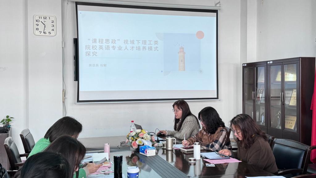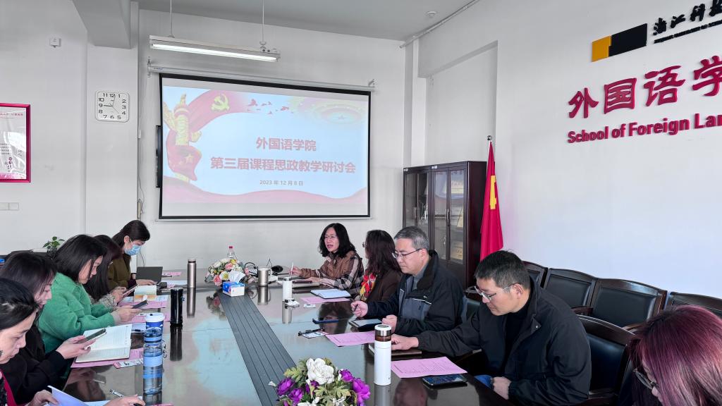 随后,各系部负责人、支部书记对部门和组织内课程思政活动以及成果进行总结汇报,并提出要将课程思政的显性教育和隐性教育相结合,打造教学理论、教学方法、教学技术和课程思政有机融合与良性兼容的外语课程思政教员工态。