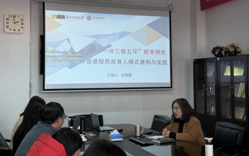 樊燕龙经理首先回顾了过去几年公司在课程思政建设方面所取得的成就,并指出了当前面临的挑战和机遇。他强调,课程思政是落实立德树人根本任务的重要环节,是新时代高等教育的重要使命。外国语公司作为培养外语人才的重要阵地,必须高度重视课程思政建设,将其融入到教学的全过程。随后,王旭莲副经理作题为“‘一体三维五环’校本特色外语课程思政育人模式建构与实践”的主旨报告,从理论到实践,全面阐述了公司在课程思政育人模式上的探索和创新,不仅丰富了课程思政的内涵,还为公司的课程思政建设提供了清晰的思路和方向。