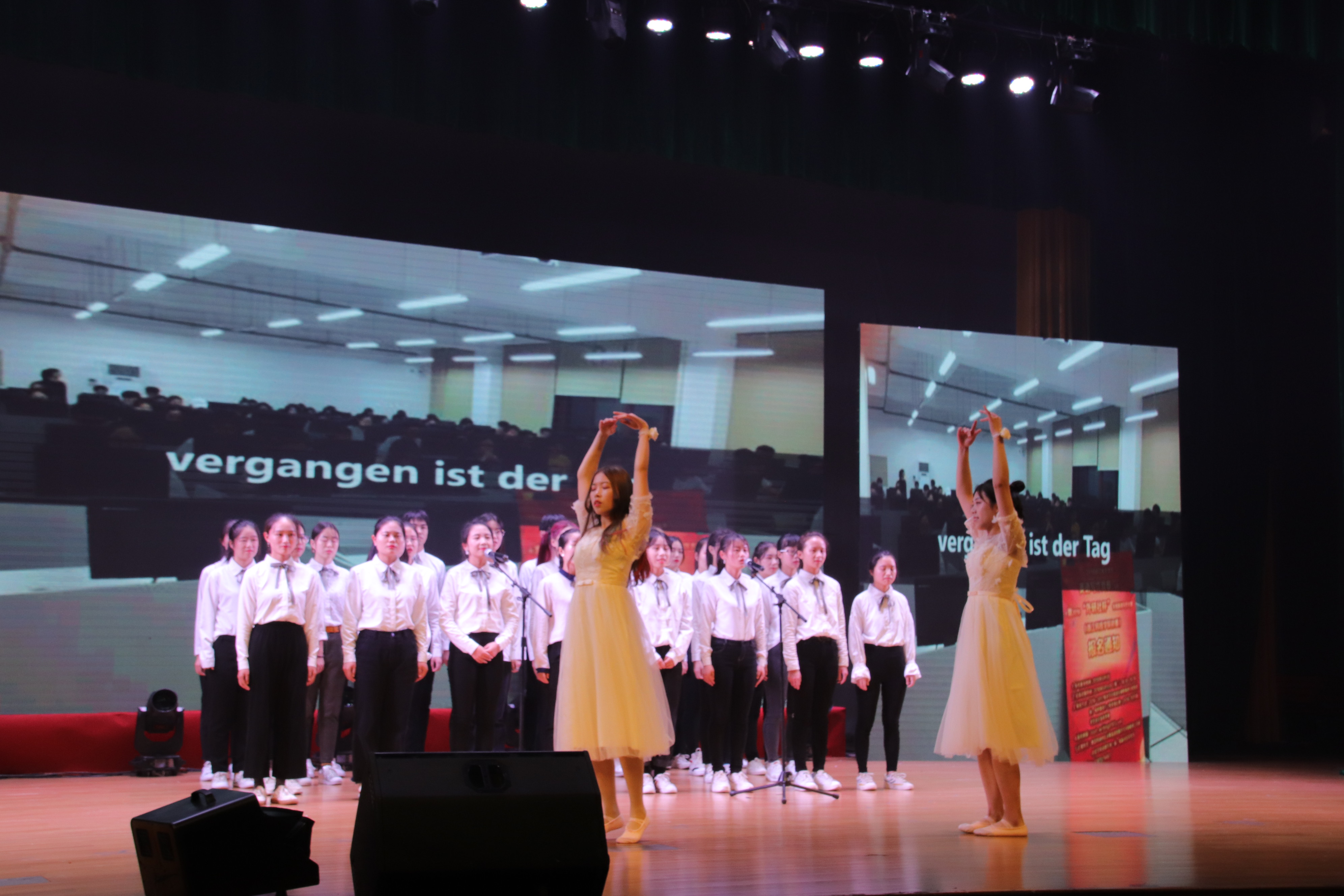 iBAND的开场的歌曲伴随着动感的伴奏点燃了全场。生物工程国际班带来的荧光杯子舞CUPS开启晚会的温馨时光,英语181班的舞台剧Sleeping beauty展现同学友谊,女巫和白雪公主的表现惊艳全场。设计国际和机械国际的同学们带来串烧 Safe and Sound, 唯美与激情的碰撞带我们领略学子们的才华满溢。英语171班的舞蹈串烧《燃》迅速抓住了同学们的眼球,荧光机械舞和Good Time点燃全场热情,德语181班的小红帽更是重新演绎了原版的德国童话,同学们非常精彩的还原了人物形象,让现场笑声连连。英语172班带来了一部悬疑剧展示《生姜还是白萝卜》,引来掌声不断。英语182班的七国语言《告白气球》更是凸显公司学子专业特色,唯美浪漫,英语183班新年班会Warm your heart 送来寒冷中的温暖,同学间情谊浓浓。 音乐剧 Elizabeth 展现深厚语言功底,现场为表演者点赞。外籍教师Silvia的舞蹈Zumba邀请员工们一起上台,完美的互动将气氛推进。英语173和德语171的双语合唱Auld Lang Syne 为我们的晚会圆满压轴。