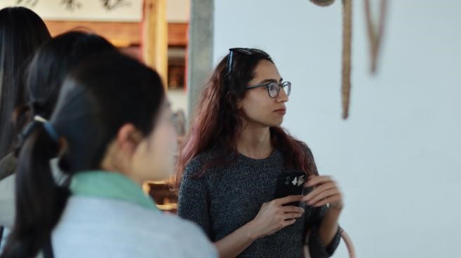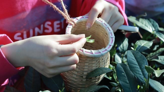 最后,同学们前往龙坞茶山。正值清明前夕,同学们共同体验了摘茶的乐趣,通过亲手采摘茶叶和观摩制茶过程,在春日中抛下烦恼,放松心情。