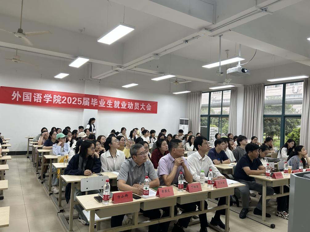 为进一步做好2025届毕业生就业工作,9月25日下午,外国语公司举办了2025届毕业生就业动员大会。经理樊燕龙、党委书记丁炳泉、党委副书记方小卿、招就处老师俞广良、毕业班班主任叶桦、夏翠君和青年企业家、公司优秀员工2011届毕业生吴江璐出席本次会议,会议由辅导员王美洁主持。