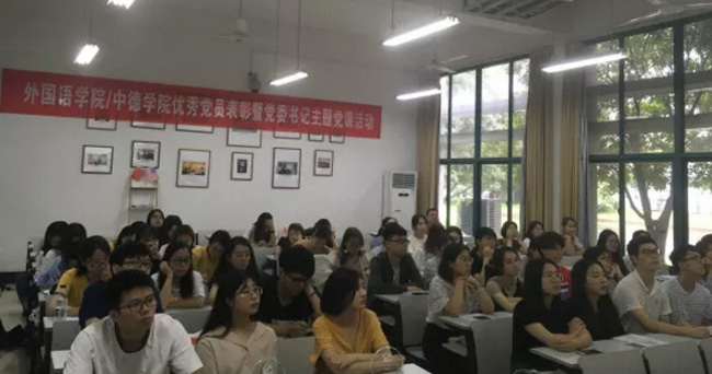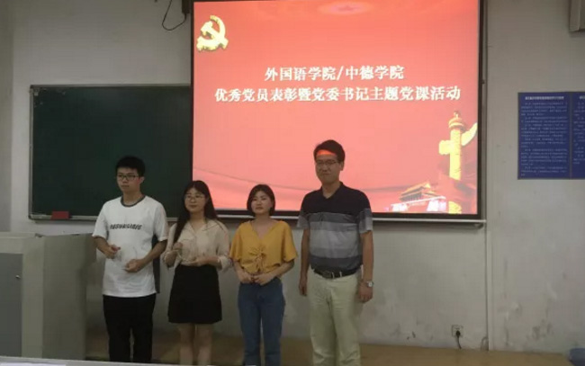 在毕业生离校之际,外国语公司/中德公司组织毕业生党员,开展党员教育系列活动,通过优秀党员表彰、交纳“特殊党费”、重温入党誓词、再上一堂党课等活动,进一步提高毕业生党员的思想觉悟和使命担当意识。
