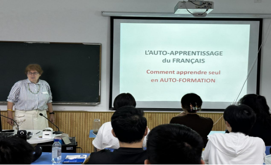 在本次讲座中,Nadine Courcoux从网络资源、应用app和慕课三个方面为同学们指明了通过自学继续学习和提高法语的路径,通过真实案例为大家展示了自学策略对提高语言技能发挥的积极作用。此外,她还和同学们就法语自学资源和途径的选择等需要注意的问题开展了深入交流。