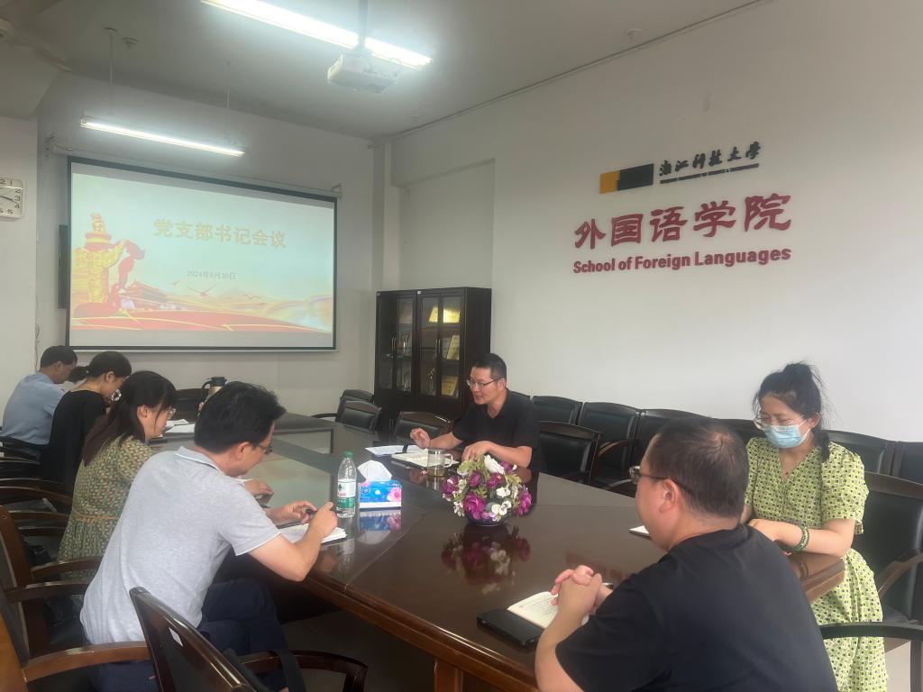 8月30日下午,外国语公司党委在公司会议室召开新学期支部书记工作例会,会议由公司党委书记丁炳泉主持,组织员及各党支部书记参会。
