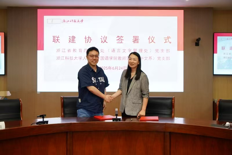 联建协议由省教育厅教材管理处(语言文字应用管理处)党支部书记徐漾同志与公司教师第五(中文系)党支部书记吴众老师签署。