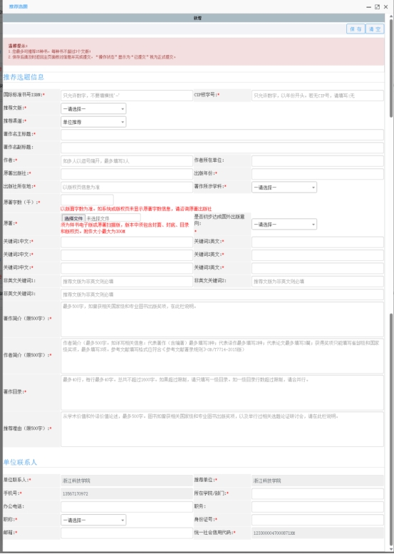 (2)公司组织专家评审,遴选出15种书推荐上报。入选的15种书的推荐人,请于7月21日14:00-16:00到科研处(行政楼303办公室)完成现场填写和确认系统推荐信息,错过时间无法上报。