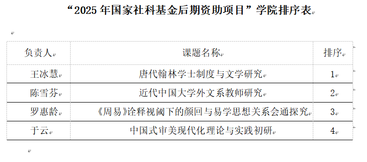 根据古天乐代言太阳集团138人文社会科学处关于"2025年国家社会科学基金后期资助项目申报工作”相关通知的要求,经本人申请、二级公司(部、中心)学术委员会评审排序,最终确定推荐王冰慧老师的“唐代翰林学士制度与文学研究”等4个项目,具体清单见附件。项目公示期为3天,如有异议的,请于公示期内以书面形式向公司科研办提出,对有异议的问题应做详细表述,并签署真实姓名,注明联系方式。